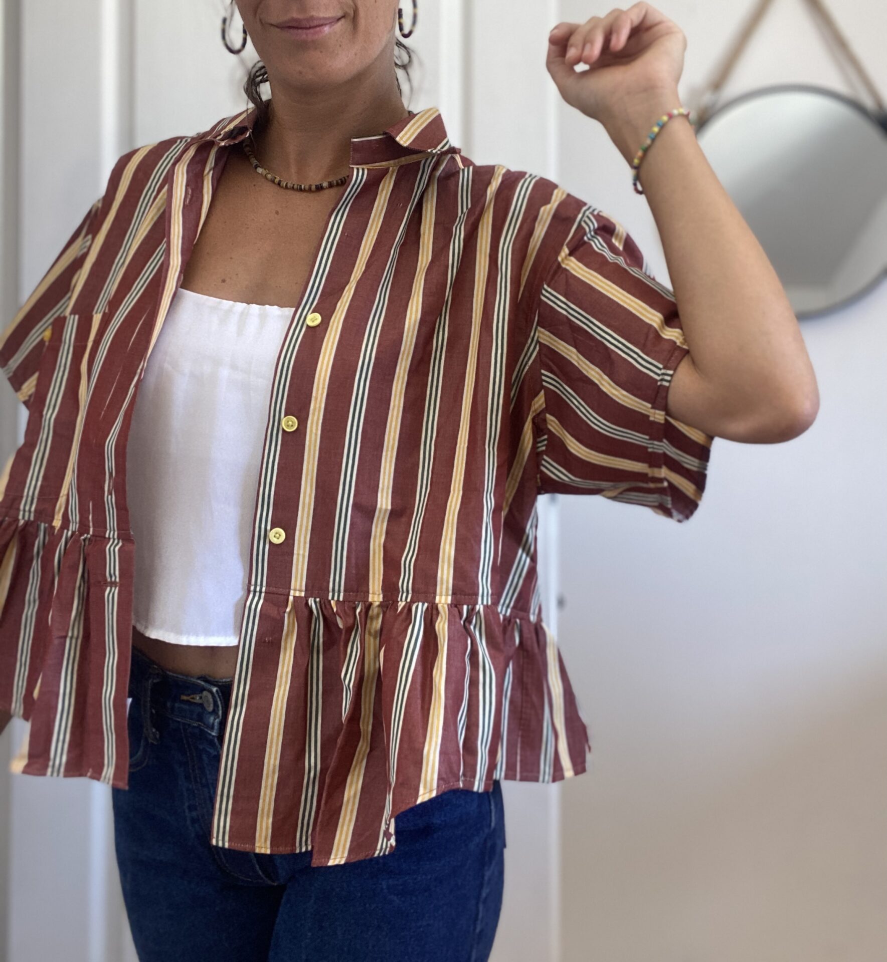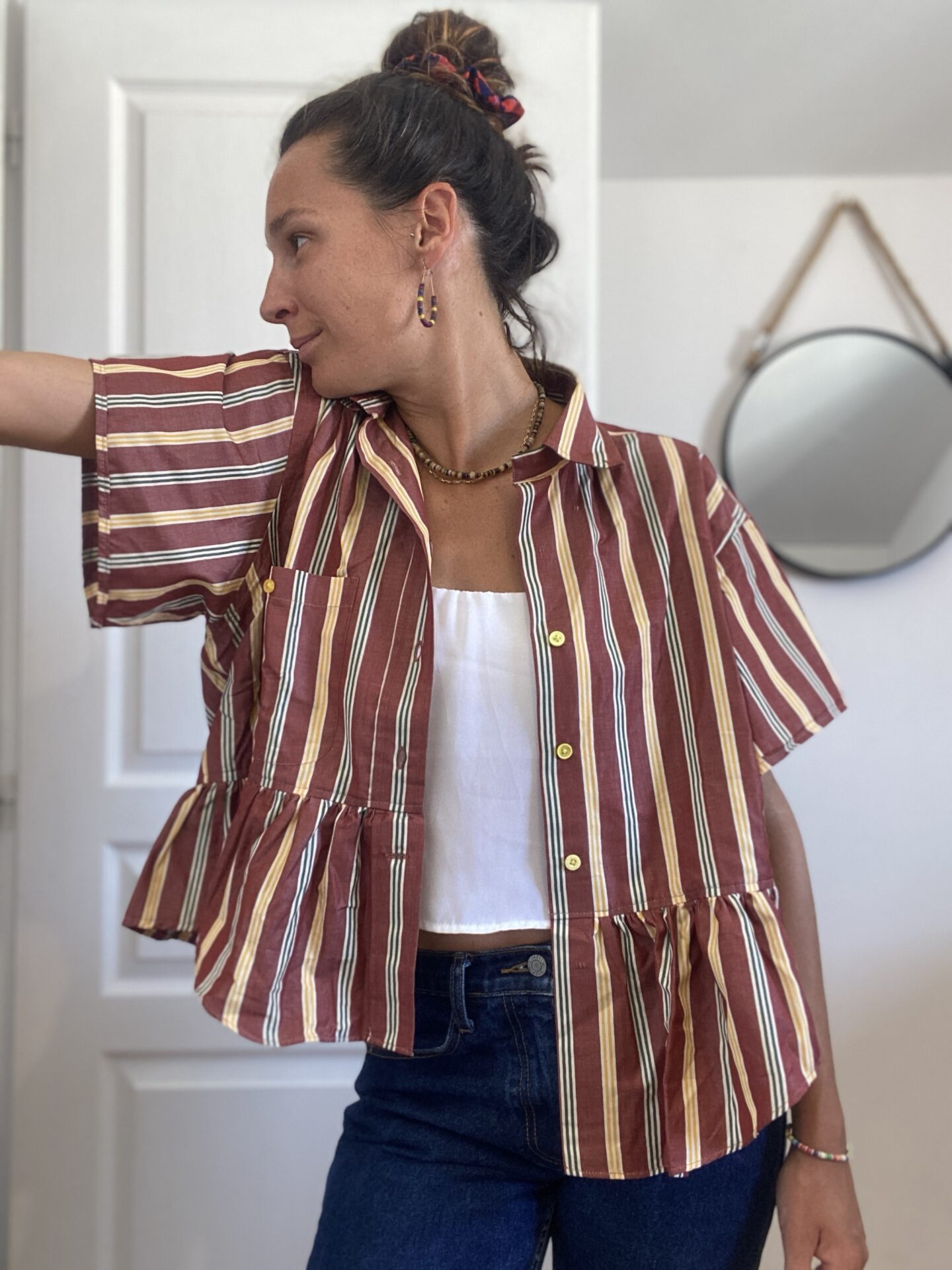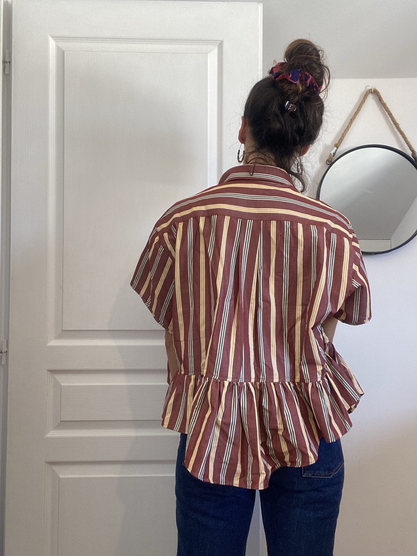 Entièrement upcyclée : sélectionnée avec soin pour son état irréprochable, son look vintage et sa grande taille, transformée en une coupe moderne & pimpée avec des boutons de couleur.