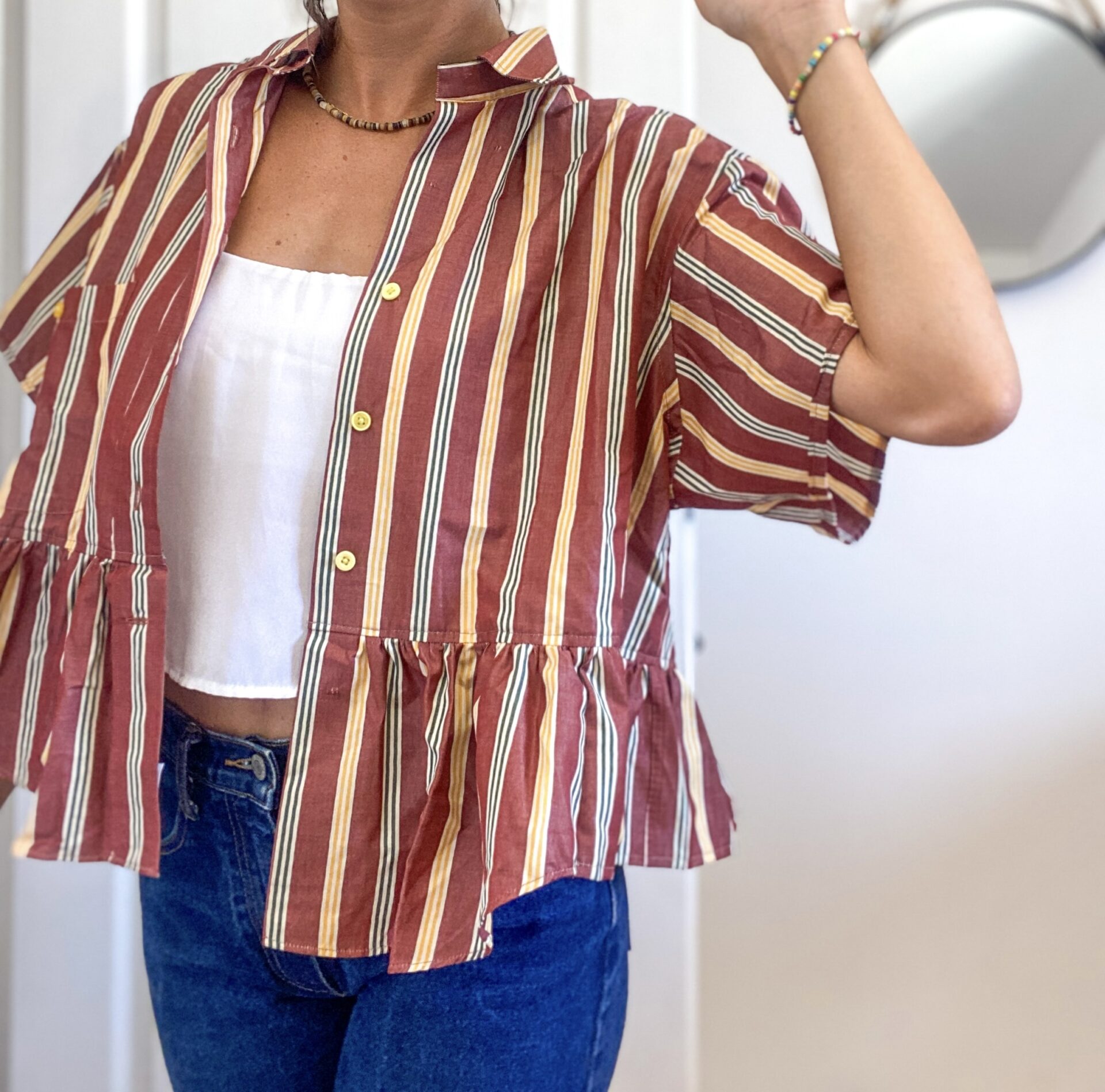 Chemise vintage de seconde main customisée en pièce unique.