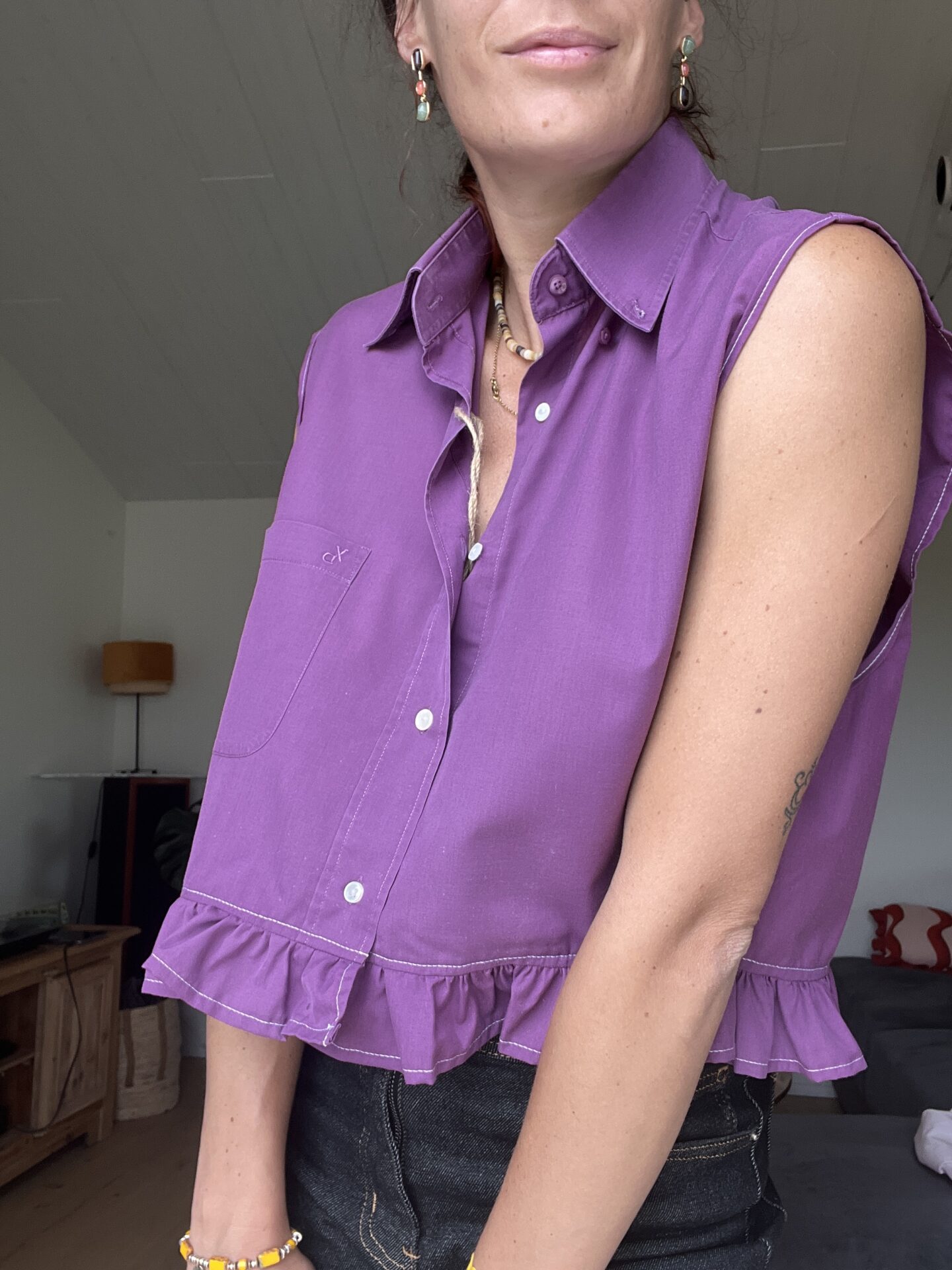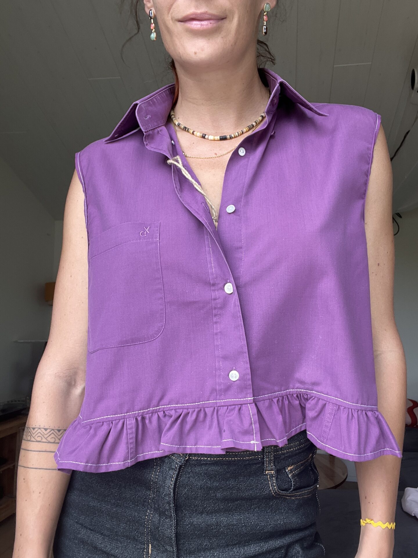 Chemise vintage de seconde main customisée en pièce unique.